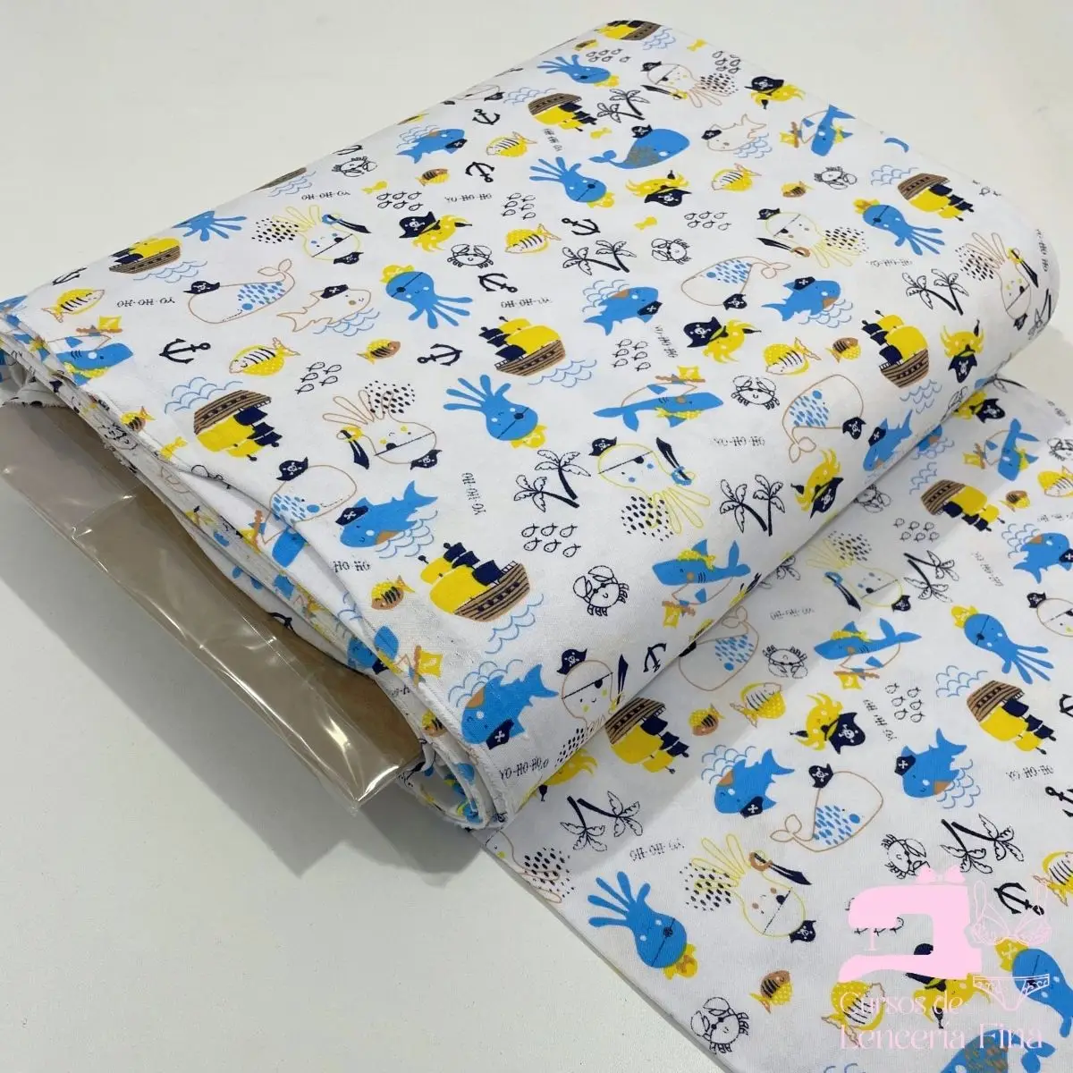 Tela de algodón jersey 30/1 estampado con diseño Barco Pirata. Tela 100% natural de fibra de algodón en presentación estampada, suave y cómoda. Ideal para confección de ropa interior infantil, trusas y prendas casuales. Hipoalergénica, transpirable y de fácil mantenimiento.