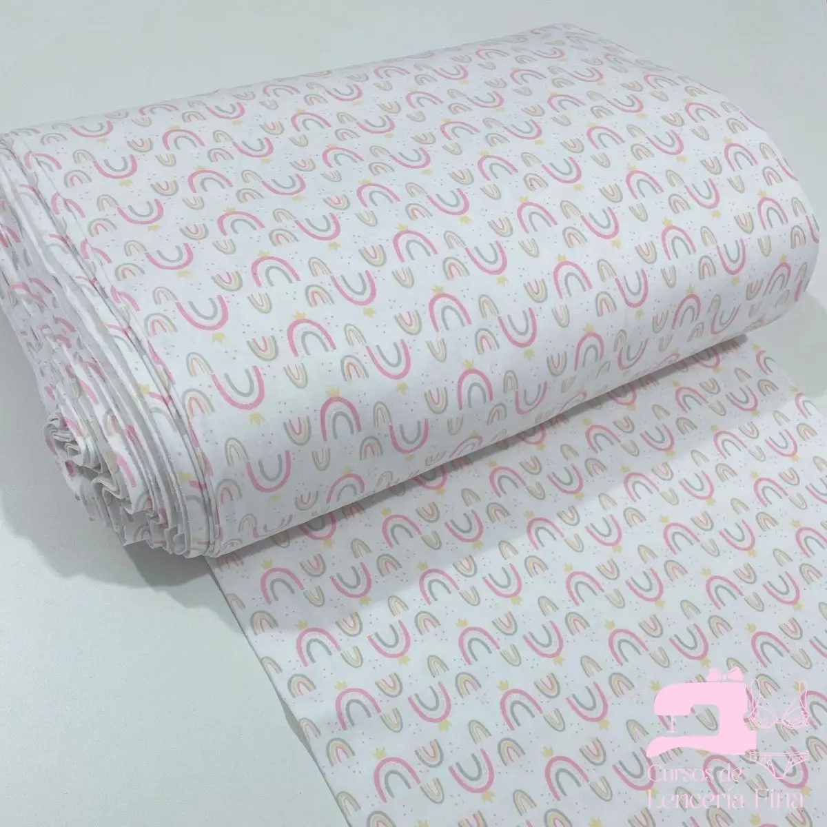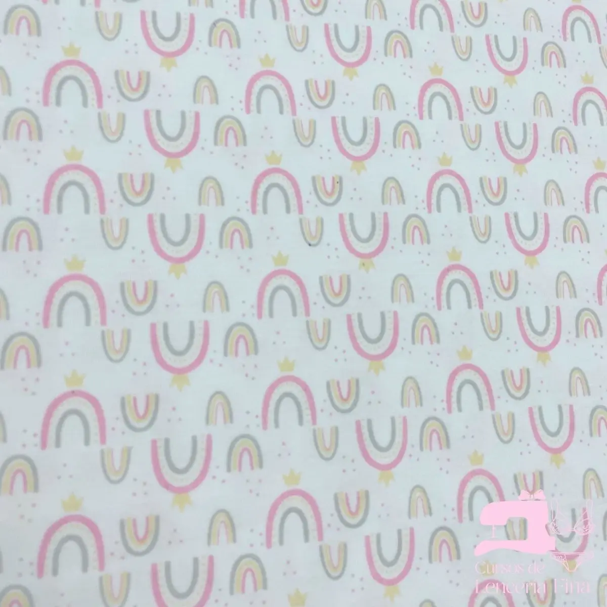 Tela de algodón jersey gamuza 50/1 estampado con diseño Arcorirs Princesa. Tela 100% natural de fibra de algodón con acabado tipo gamuza, suave y aterciopelada al tacto. Ideal para confección de ropa interior infantil, pijamas y prendas cómodas. Hipoalergénica, transpirable y de fácil cuidado.