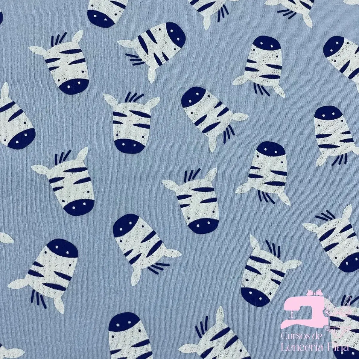 Tela de algodón jersey gamuza 50/1 estampado con diseño Cebra. Tela 100% natural de fibra de algodón con acabado tipo gamuza, suave y aterciopelada al tacto. Ideal para confección de ropa interior infantil, pijamas y prendas cómodas. Hipoalergénica, transpirable y de fácil cuidado.
