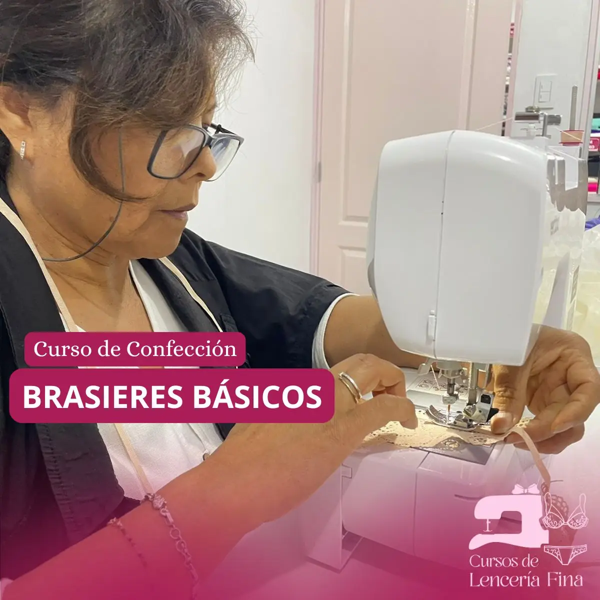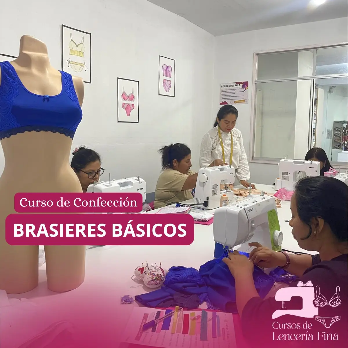 Cursos de confección de Brasieres, dirigido para personas que por primera vez van a confeccionar prendas íntimas, se enseña el proceso de armado y acabados de confección de 8 diseños de brasieres, diseños juveniles y señoriales, todos los alumnos realizan el curso presencial haciendo uso de una máquina casera, con la supervisión de la profesora a cargo.