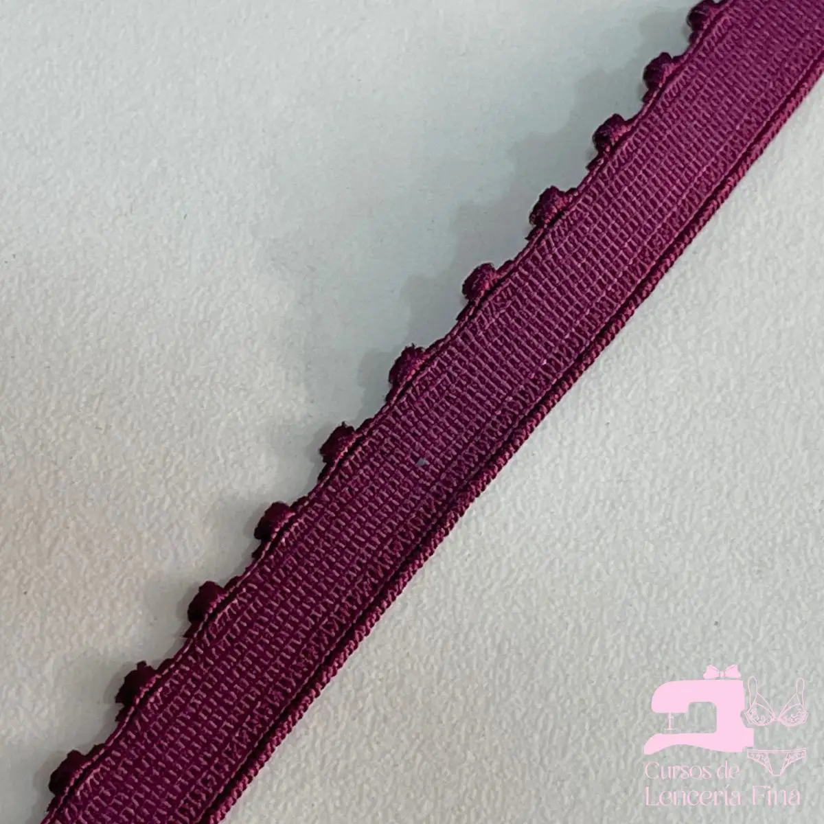 Elástico panty en color Guinda, con mora de textura afelpada que proporciona suavidad al contacto con la piel. Ideal para pretinas de trusas y panties, ofrece ajuste cómodo, seguro y con excelente recuperación elástica. Material esencial en la confección de ropa interior.