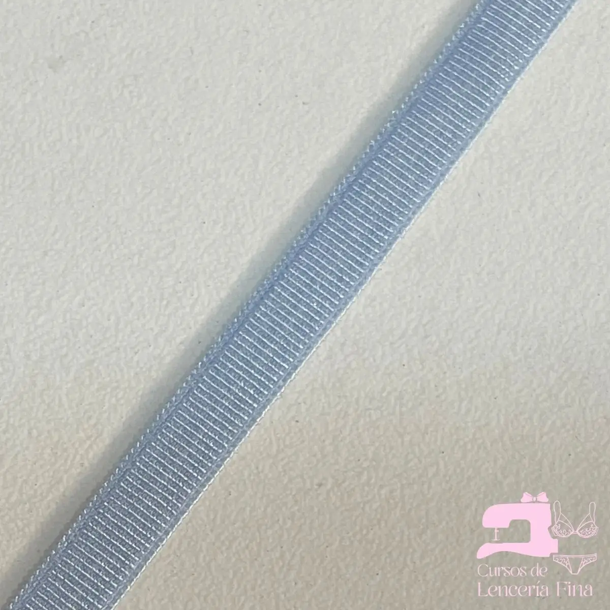 Elástico plano en color Celeste, cinta elástica de 6mm de ancho, delgada y versátil. Ideal para costuras internas, ajustes en brasieres, refuerzos de copas y aplicaciones donde se requiere elasticidad discreta. Flexible, resistente y de fácil manipulación en la confección de lencería.