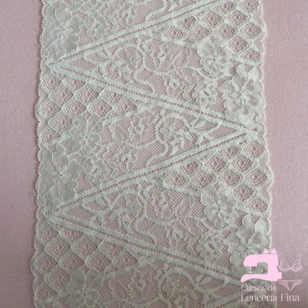 Encaje elástico color entero con diseño Aurora Perla. Tela de encaje con textura suave, ligero relieve y transparencia con diseños florales en un solo tono uniforme. Ideal para brasieres, bralettes y lencería fina. Ofrece elasticidad, comodidad y un acabado delicado y femenino.