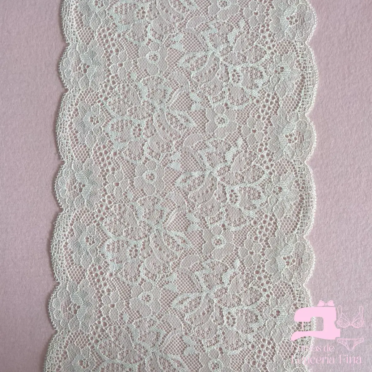 Encaje elástico color entero con diseño Clavel Blanco. Tela de encaje con textura suave, ligero relieve y transparencia con diseños florales en un solo tono uniforme. Ideal para brasieres, bralettes y lencería fina. Ofrece elasticidad, comodidad y un acabado delicado y femenino.
