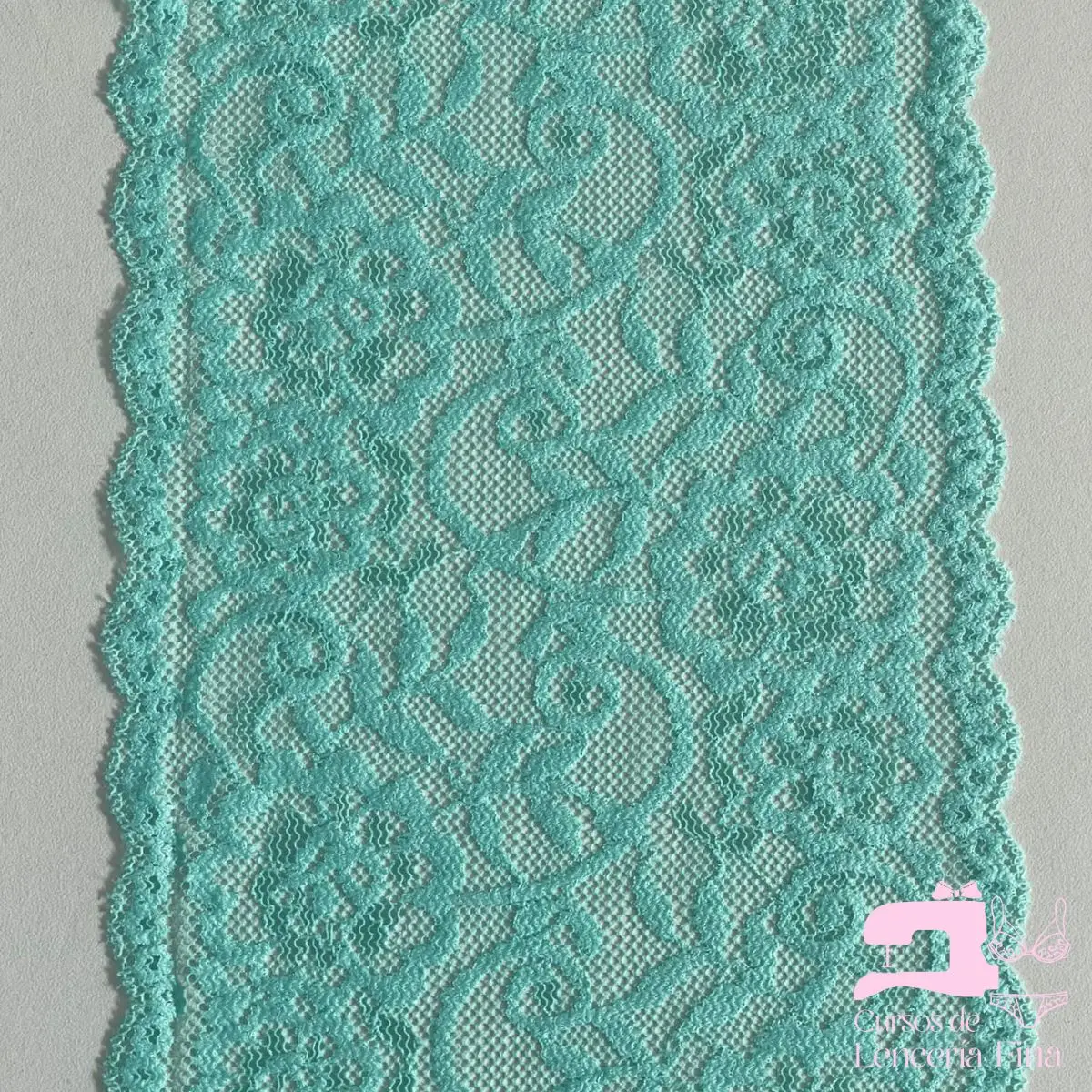 Encaje elástico color entero con diseño Floreado Verde Menta. Tela de encaje con textura suave, ligero relieve y transparencia con diseños florales en un solo tono uniforme. Ideal para brasieres, bralettes y lencería fina. Ofrece elasticidad, comodidad y un acabado delicado y femenino.
