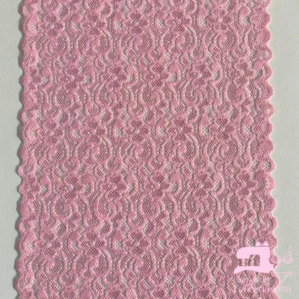 Encaje elástico color entero con diseño Nemesia Rosado. Tela de encaje con textura suave, ligero relieve y transparencia con diseños florales en un solo tono uniforme. Ideal para brasieres, bralettes y lencería fina. Ofrece elasticidad, comodidad y un acabado delicado y femenino.