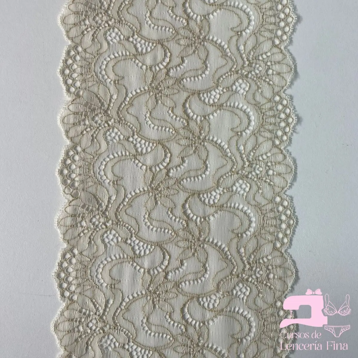 SKU: Telas-Elásticas-encaje-elástico-matizado-diseño-isabel-beige-con-perla-01 Categoría: