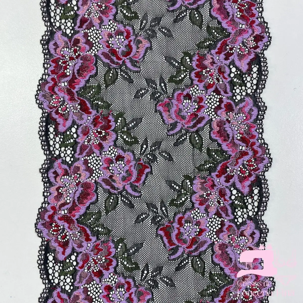 Encaje elástico matizado con diseño Sombra Floral. Tela de encaje con textura suave que presenta relieve delicado y transparencia con diseños florales y geométricos en combinación de dos tonos. Ideal para brasieres, bralettes, baby dolls y prendas de lencería fina con acabado elegante y sofisticado.