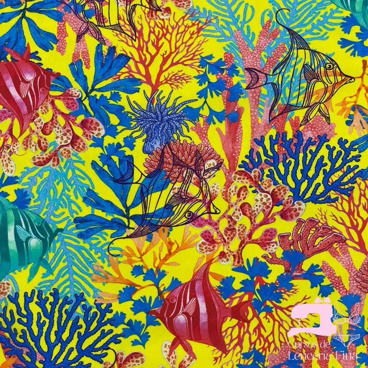 Licra para traje de baño estampada con diseño Algas Marinas Amarillo. Fibra sintética que se destaca por su elasticidad, resistencia a la exposición al sol y al salitre del mar. Ofrece secado rápido, protección UV y retención de color. Ideal para bikinis, trajes de baño enterizos y prendas deportivas acuáticas.