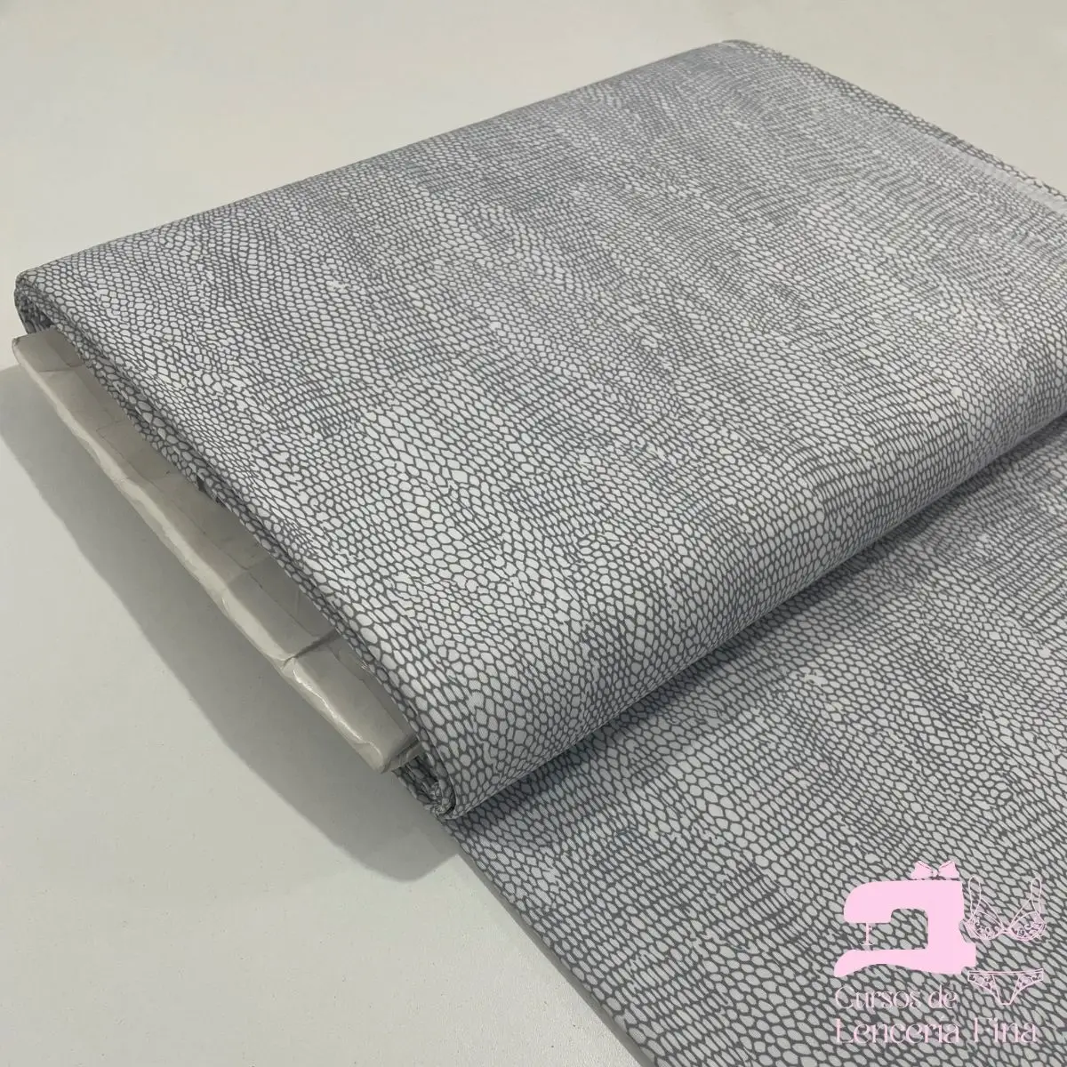 Tela de microfibra estampada con diseño Mallas Plomo. Tela sintética de textura ultrasuave, flexible y resistente, ideal para prendas de lencería y ropa interior de alta calidad. Ofrece excelente caída, durabilidad y comodidad prolongada. Perfecta para trusas, brasieres y bralettes.