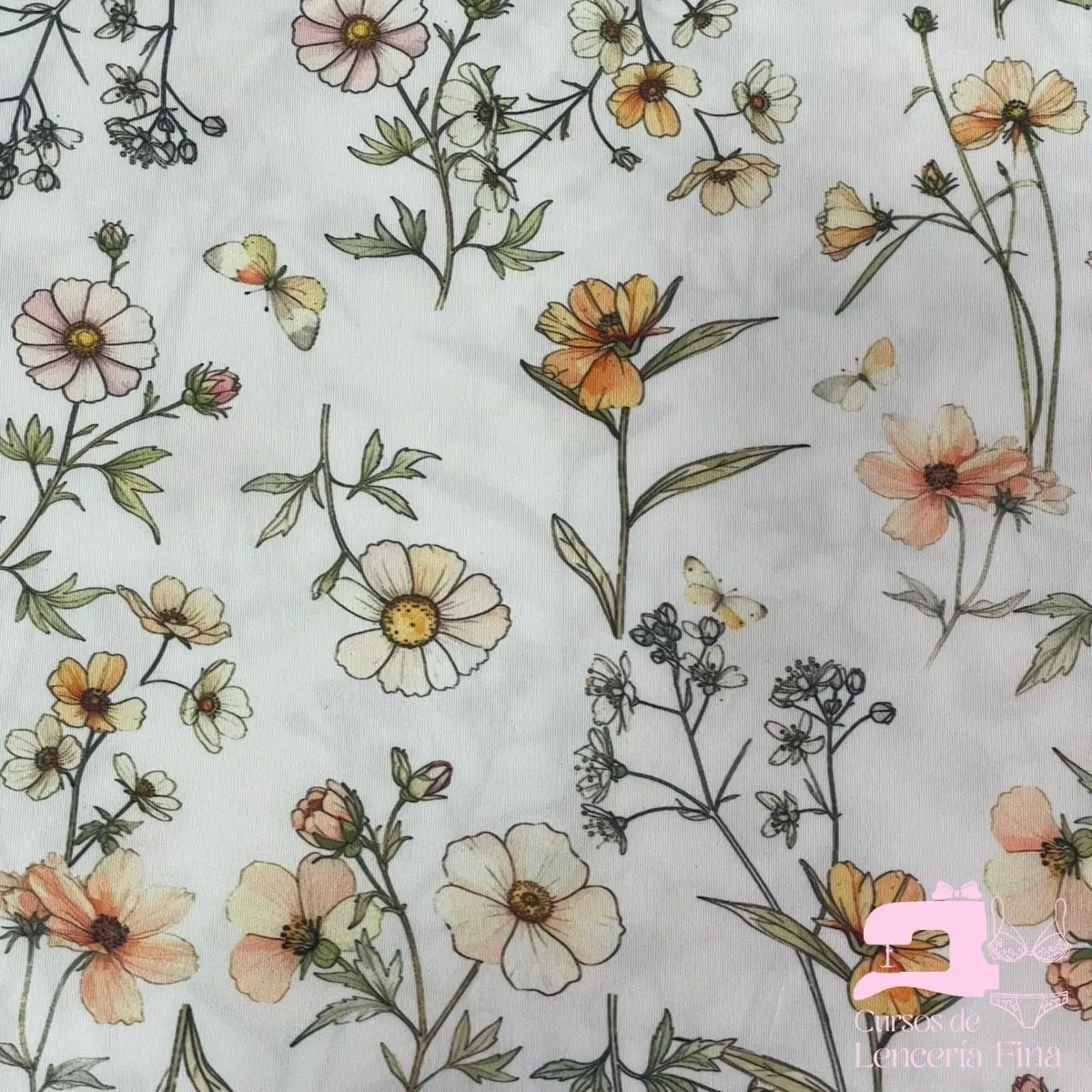 Tela de microfibra estampada con diseño Narciso Perla con Amarillo. Tela sintética de textura ultrasuave, flexible y resistente, ideal para prendas de lencería y ropa interior de alta calidad. Ofrece excelente caída, durabilidad y comodidad prolongada. Perfecta para trusas, brasieres y bralettes.