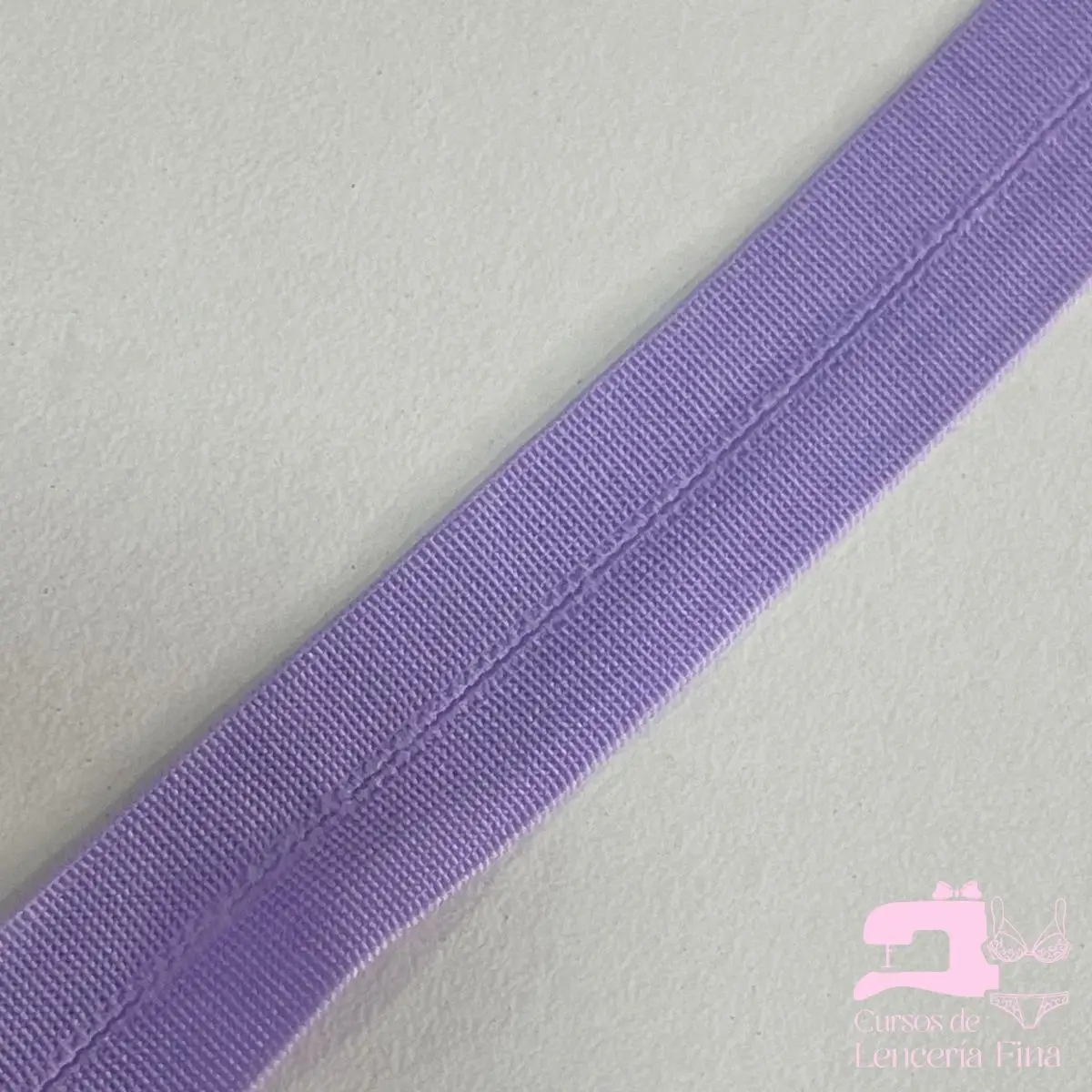 Sesgo elástico en color Lila, cinta de 15mm con línea de quiebre en el centro para facilitar el doblado. Proporciona acabados limpios y profesionales en bordes de trusas, brasieres y prendas de lencería. Suave al contacto con la piel, con excelente elasticidad y durabilidad.