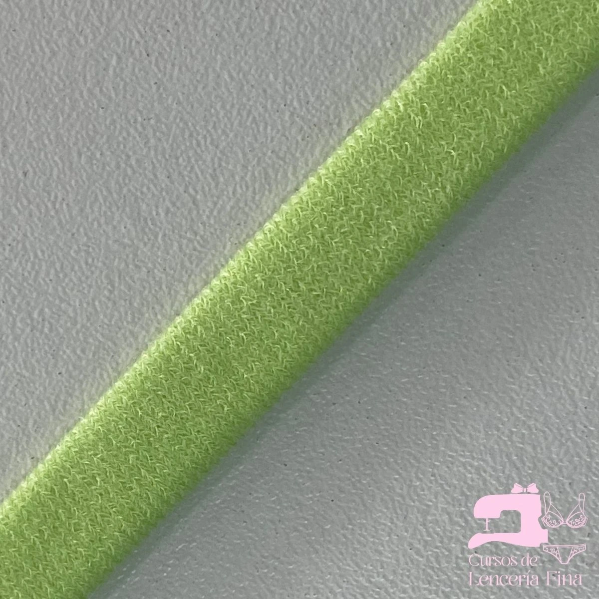 Tapa varilla en color Verde Manzana, cinta afelpada diseñada para la colocación de varillas metálicas y barbas de silicona o metal en brasieres. Protege la piel del roce de las varillas brindando mayor comodidad. Indispensable para un acabado profesional en prendas de lencería con estructura.